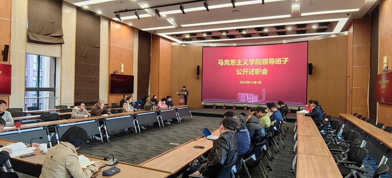 根据2023年度pp电子官方网站中层干部考核工作安排,12月1日上午,pp电子官方网站领导班子公开述职会在学校行政楼330会议室召开。校党委书记鲁雄刚,党委组织部部长吴美华,我院全体教师参加大会会,会议由pp电子官方网站直属党支部书记金辉主持。