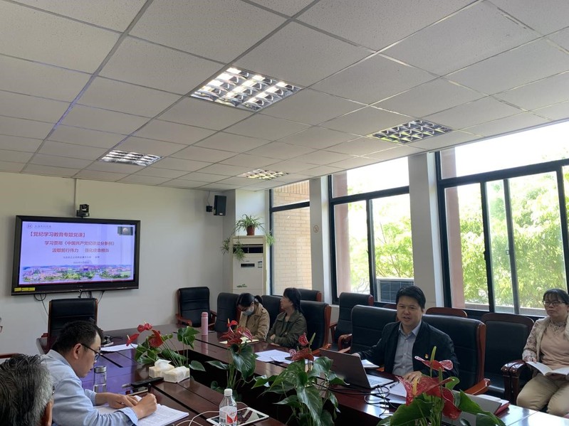 金辉首先部署了5月学院主题党日相关安排。自学校党纪学习教育动员部署以来,pp电子官方网站全体党员利用“共产党员”“廉洁上海”“上海基层党建”“高校组工之家”公众号等平台开展个人自学,认真学习党章中有关党的纪律相关内容,逐章逐条学习《中国共产党纪律处分条例》。