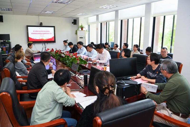 5月17日,为深入学习贯彻习近平总书记对学校思政课建设重要指示精神,不断推动我校思政课改革创新,开创新时代思政教育新局面,学校举办“学习贯彻习近平总书记对学校思政课建设重要指示精神”专题学习会,校党委书记鲁雄刚,党政综合办公室主任吕小亮、党委宣传部部长朱成实、党委学工部副部长李洁、团委书记张珂、pp电子官方网站主持工作副院长范冬姣以及pp电子官方网站全体教师参加,会议由pp电子官方网站直属党支部书记金辉主持。