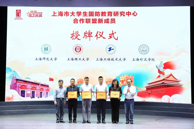 会上,“上海市大学生国防教育研究中心”合作联盟为上海师范大学、上海理工大学、上海工程技术大学、上海杉达学院等4家新成员授牌。pp电子官方网站党委书记鲁雄刚、市国防教育协会常务副会长张黎明为4家“上海市大学生国防教育研究中心”合作联盟新成员授牌。