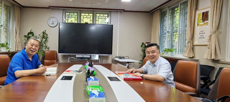 韩毓海教授代表研究院对刘炳辉的到来表示热烈的欢迎,并对刘炳辉在过去多年中的学术研究和育人工作表达充分的肯定和赞赏,对未来双方深入合作充满信心。北京和上海是中国最重要的两个城市,党的孕育在北京、在北大,党的诞生在上海、在浙江,京沪在相关领域深入合作具有深厚的历史渊源和现实需要。韩毓海教授表示,会大力推动双方的深入合作,个人将会不遗余力支持电机马院的育人和研究工作。座谈之后,双方共同游览了博雅塔和未名湖,整个过程圆满温馨,成果丰硕。