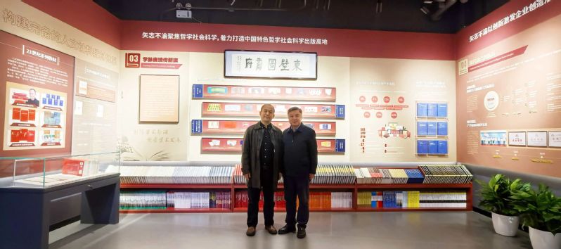 赵有光社长陪同刘炳辉参观历史展览馆,详细介绍出版社的历史沿革和辉煌成绩,并对电机马院未来布局思政实践教育表示高度认可,对刘炳辉多年来组织读书会并带领大批学生开展田野调研深表敬佩,出版社一直对学术界保持敏锐关注,期待与电机马院在相关领域不断合作。